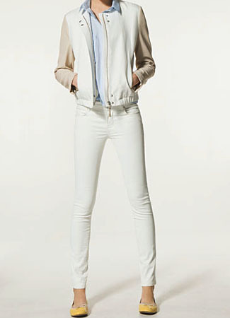 Jaket keluaran brand ternama Massimo Dutti tersebut bisa membuat Anda yang memakainya tampil lebih gaya. Celana panjang berwarna putih serta blouse berwarna serupa bisa menjadi padanan yang pas dan sesuai.