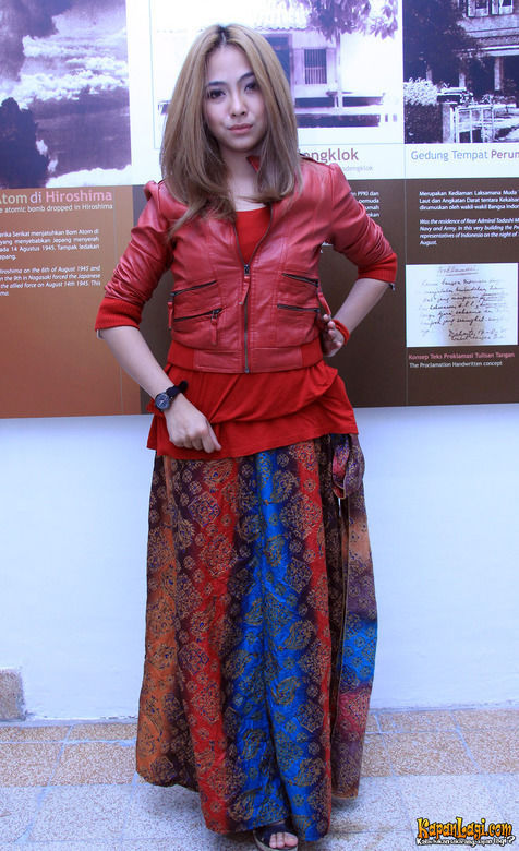 Nadia Vega Padukan Jaket Kulit Dengan Rok Batik